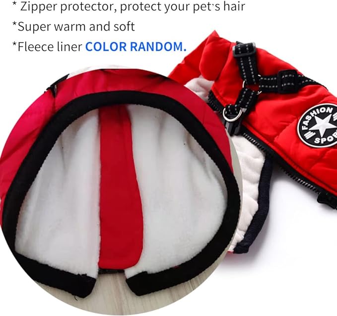KEEPS DOG WARM — Cold weather dog coat keeps dog warm during the winter months. NOTE: The warm fleece liner is COLOR RANDOM.