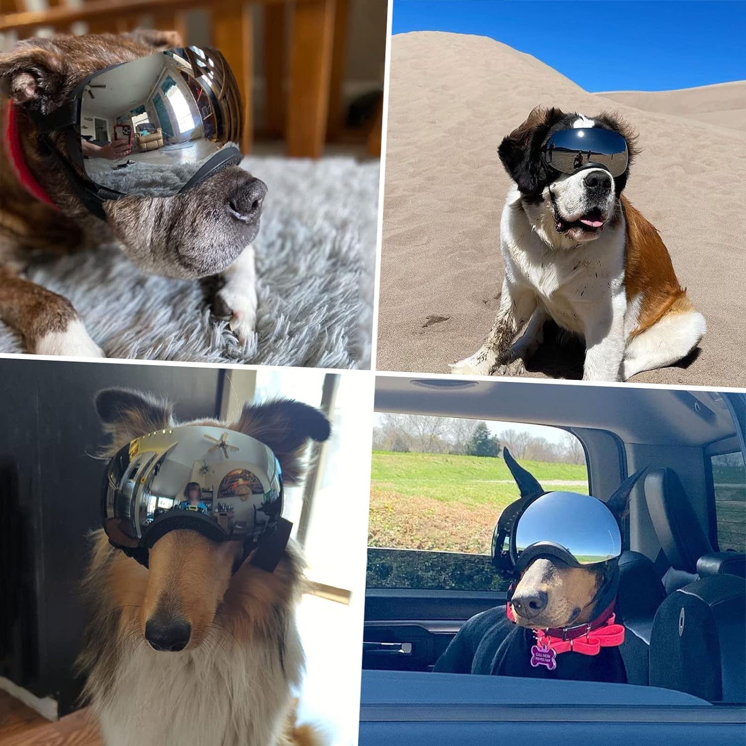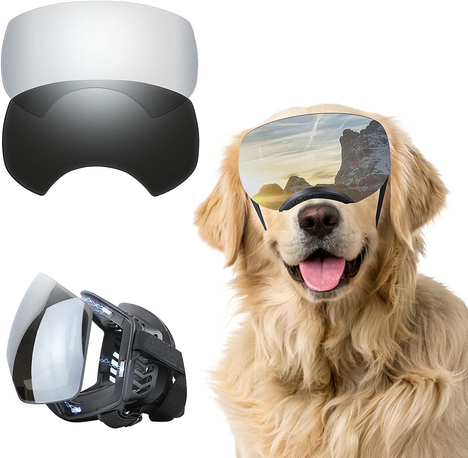 Deep eyecups goggles can stay on the head well without scraping dog’s face and eyes. Prevent droplets, dust, tiny stone into dog eyes when dog stick the head out the window on car. Protect dogs eyes when they runing, skiing, traveling.
