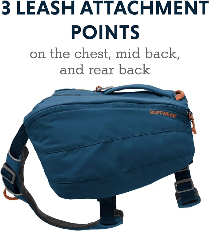 The Front Range Day Pack incorporates Ruffwear’s signature radial cut saddlebags with the customer-favorite Front Range® Harness platform, making it an everyday pack staple in any dog’s gear closet. Dogs can help shoulder the load thanks to the integrated padded harness and belly strap that adjust for exceptional fit and pack stability. The saddlebag geometry creates a passive compression system that is formfitting and supports efficient load carrying. There are three leash attachment options: a V-ring and a tow loop on the back, and a reinforced webbing loop on the chest – great for redirecting dogs that pull when on leash. With plenty of internal organization and trail-minded details, this comfortable day pack equips dogs to carry the day’s provisions on hikes and frontcountry pursuits. Check out this articleif you need help choosing the right pack.