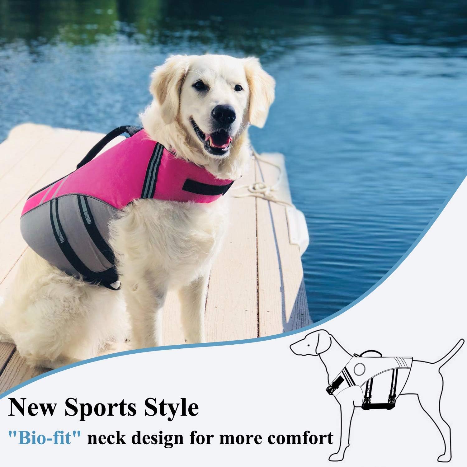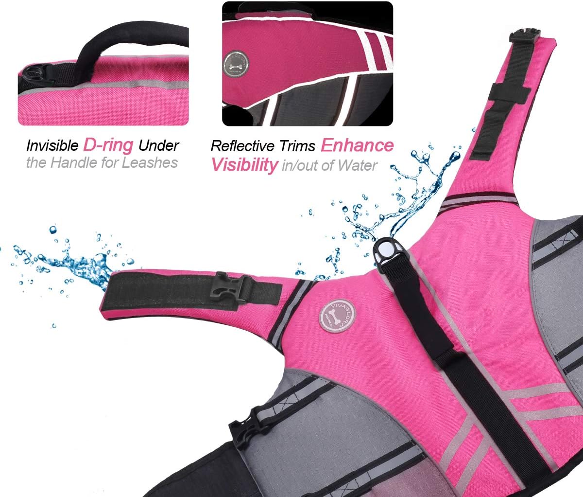 VIVAGLORY Sports Style Dog Life Jacket with Extra Flotation, Adjustable & Durable Swim Life Vest with Secure Fastening System for Large Dogs, Pink